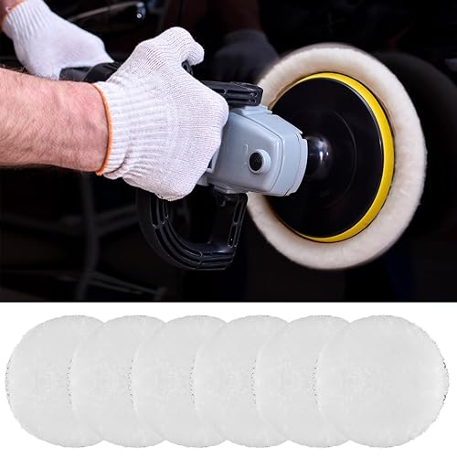 7 Pezzi 5 Pollici Cuffie per Lucidatura Auto, Pads in Lana per lucidatura auto, Kit Piatto in lana, Copertura per Lucidatura Lana, per Auto Lucida, con Adattatore Trapano