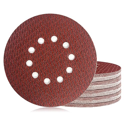 Dischi Abrasivi 225 mm, 30 Pezzi 10 Fori Rombo Rosso Carta Vetrata Ossido di Alluminio, P40 Grana per Levigatrice Cartongesso