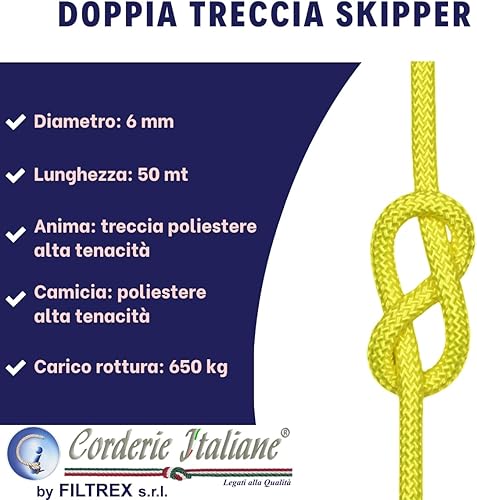 Corderie Italiane 006102809 Doppia treccia skipper alta tenacità, giallo flu, 6 mm - 50 metri