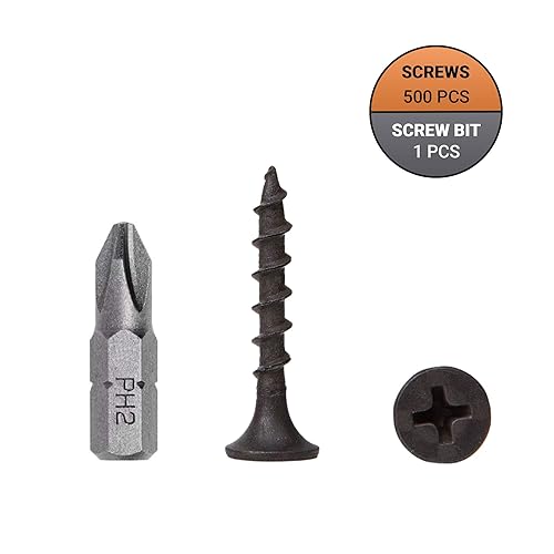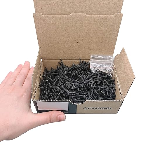 Confezione da 500 viti in acciaio al carbonio fosfato nero, 3,5 x 25 mm, con testa svasata a croce Phillips, per cartongesso, legno e truciolato (500, 3,5 x 25 mm)
