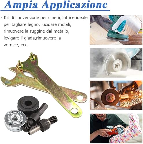 Mesee Kit Conversione di Trapano Elettrico in Smerigliatrice Angolare, M6 & M10 Biella di Conversione per Trapano a Mano con Chiave Set Adattatore Mandrino per Levigatura Smerigliatura Lucidatura