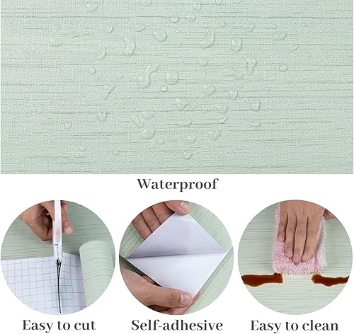 VaryPaper Carta da Parati in Tessuto Verde 40cmx200cm con Struttura Lino Grasscloth - Adesivi Decorativi per Mobili, Camera da Letto e Soggiorno Moderno