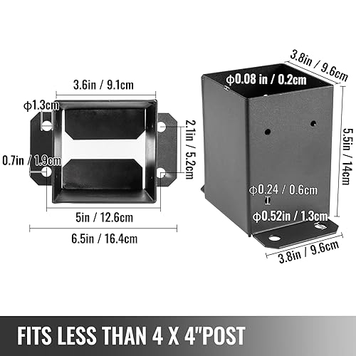 VEVOR 4 x 4 pali di base, 10 pezzi, base per pali da 9,1 x 9,1 cm, staffa per pali da 1,1 kg, colore nero, verniciato a polvere, con acciaio spesso