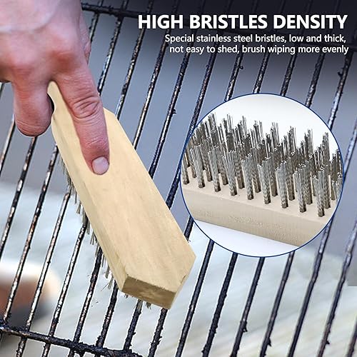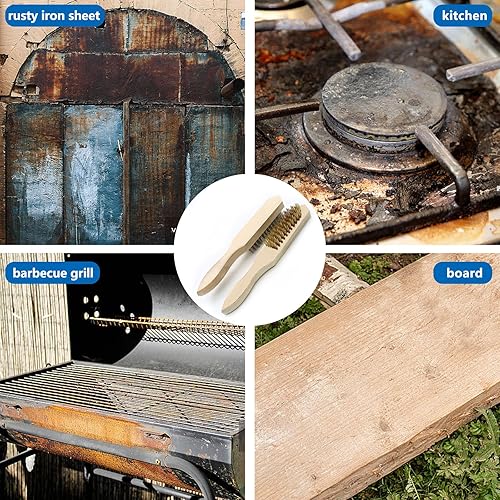 Spazzola metallica in ottone con manico in legno, set di 4 spazzole in acciaio inox, spazzola in ottone, spazzola in ottone, 13/15 file, per pulire la ruggine, lo sporco, la spazzola