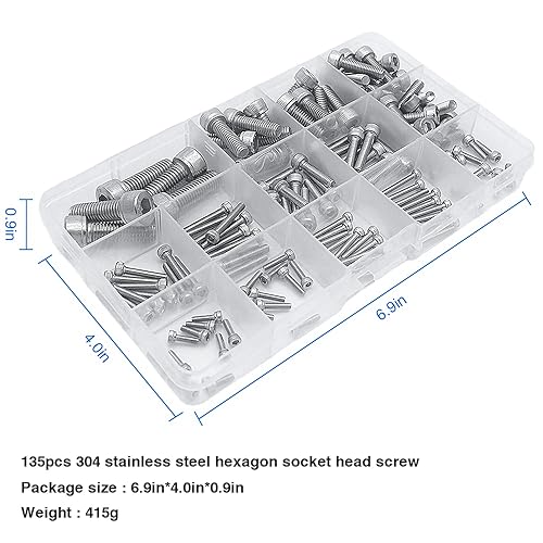 135pcs Set di Viti a Esagono Incassato M2.5 M3 M4 M5 M6 M8 Viti Brugola in Acciaio Inossidabile 304 Viti a Testa Bombata, con Scatola