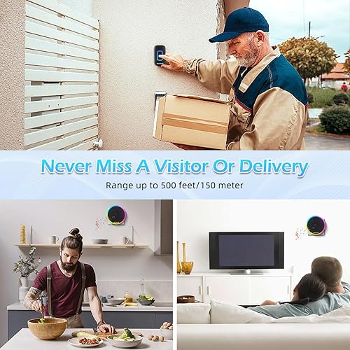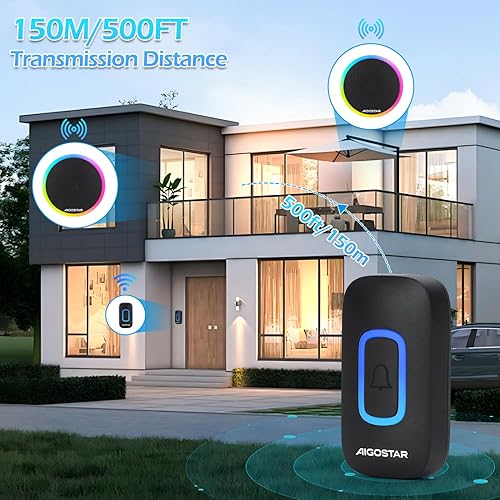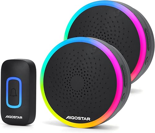 Aigostar campanello senza fili, Campanello Wireless Impermeabile IP55 da Esterno, Campanello Wireless RGB, Portata 150M, 5 Livelli Volume 60 Melodie, Bianco, 1 Trasmettitore+2 Ricevitor
