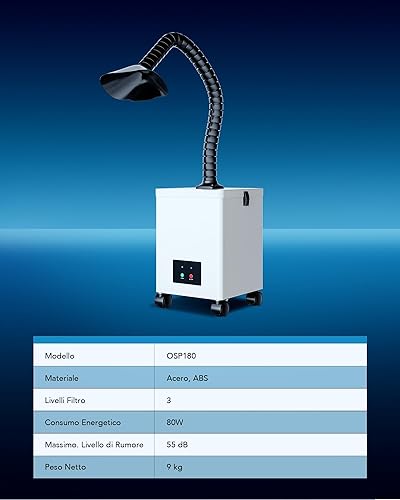80W Estrattore di Fumo con Filtrazione a 3 Stadi per Incisore Laser Saldatura180 m3/h Assorbitore di Fumo con Ruote Purificatore di Fumo per Incisore Laser Saldatura Macchina CNC