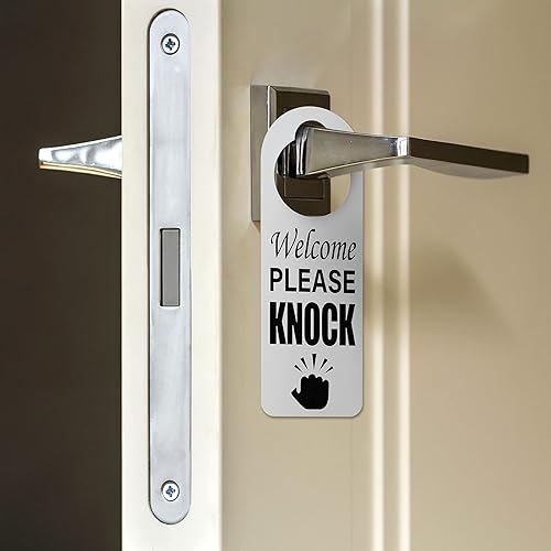 4 Pezzi Segno del Gancio della Porta Do Not Disturb, Segno Porta Gancio Segno da Appendere alla Maniglia della Porta, Segno Welcome Please Knock per Ufficio Bagno, Casa, Sala Conferenze