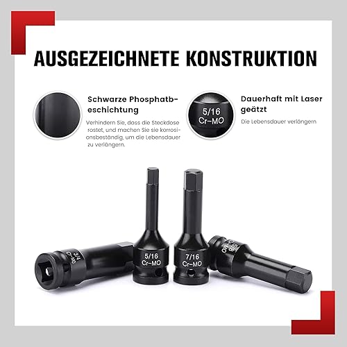 PGROUP Set di 8 pezzi di bussole a impatto Allen da 1/2 pollice, chiave esagonale SAE da 1/4' a 3/4', in acciaio Cr-Mo di alta qualità con custodia resistente