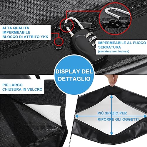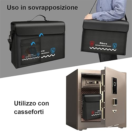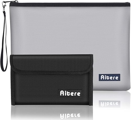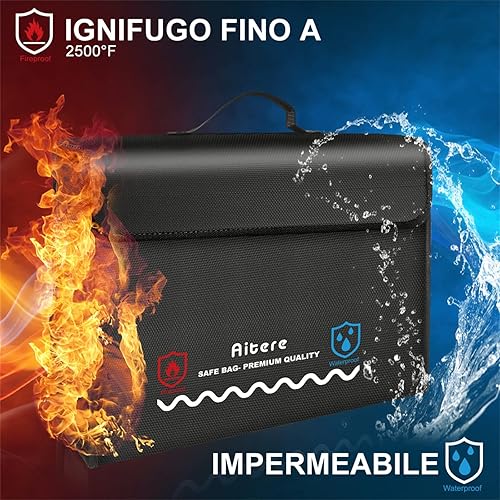 Aitere Cartellina portadocumenti ignifuga per documenti A4, grigio., 34 x 25cm, Impermeabile
