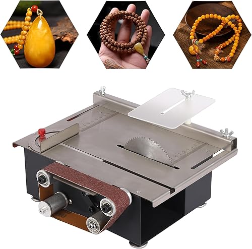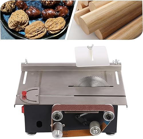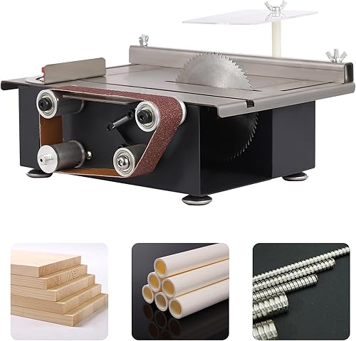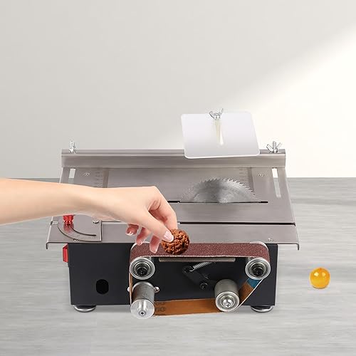 Mini sega circolare da tavolo fai da te con nastro abrasivo e motore da 200 W per taglio legno, taglio metallo e applicazioni fai da te, 33 mm