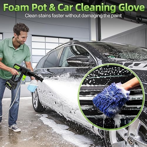 LanBlu Idropulitrice a Batteria per Auto, 980 PSI Idropulitrice Portatile con Ugello Regolabile 6-in-1, 18000mAh Mini Idropulitrice Professionale, Senza Fili Idropulitrice per Condizionatori Casa Auto