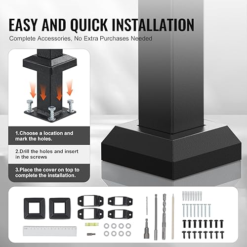 VEVOR Corrimano per Gradini Esterni, Lunghezza 101,6 cm Corrimano per Scale a 2-3 Gradini, Ringhiere per Gradini Esterni con Kit di Installazione, Ringhiera per Portico, Corrimano per Terrazza, Nero