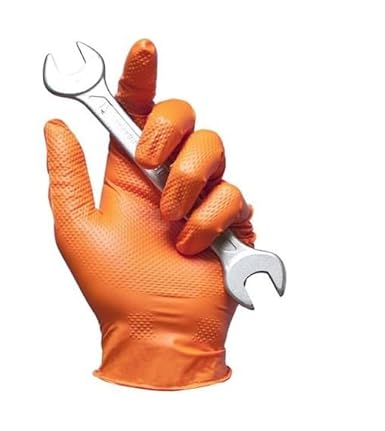 Guanti in Nitrile - Taglia L, Confezione da 50 pz | Arancioni Diamantati Senza Polvere, Ipoallergenici, Certificati CE | Per Meccanici, Alimenti, Tatuator