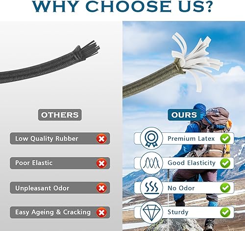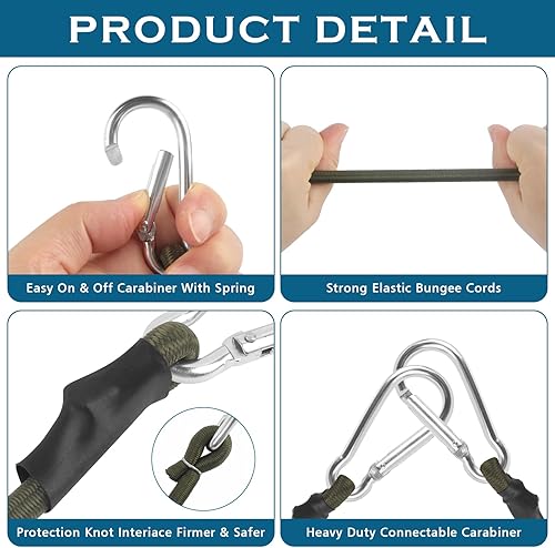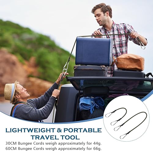 4 Pezzi Corda Elastica con Moschettone Durevole, 30/60cm Cinghie Elastiche a Moschettone Robuste, Resistente Corde Elastiche con Gancio per Bagagli Bicicletta Campeggio Auto