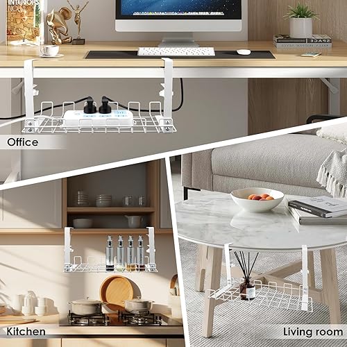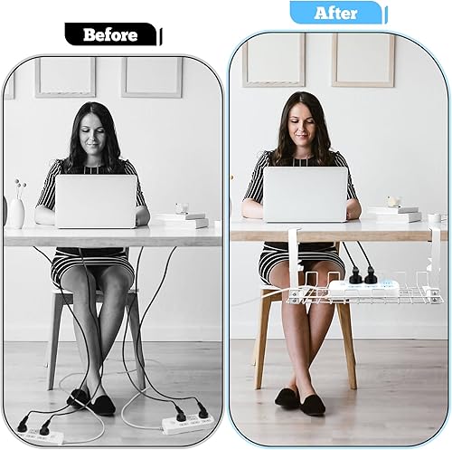 Cable Management, Porta Cavi Scrivania Nascondi Cavi, Vassoio per la Gestione dei Cavi Senza Bisogno di Forare, Scatola Porta Cavi per Ufficio e Casa Scrivania, Bianco