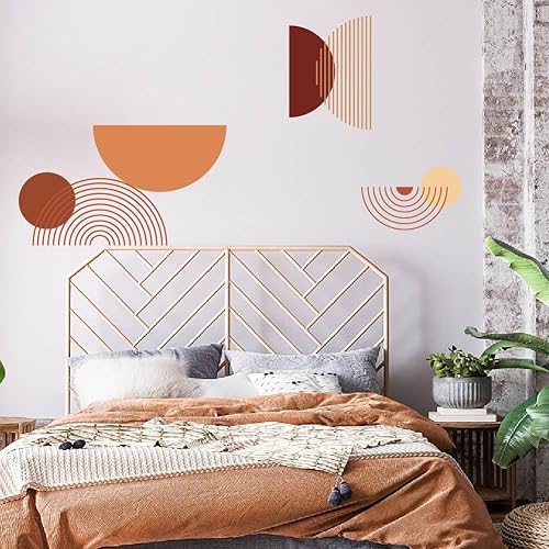 Boho Style Wall Decor con Geometric Linear Circle Wall Sticker Peel And Stick Wall Decals DIY Art PVC Wall Decal Decorations to Stick On The Wall for Living Room Bedroom