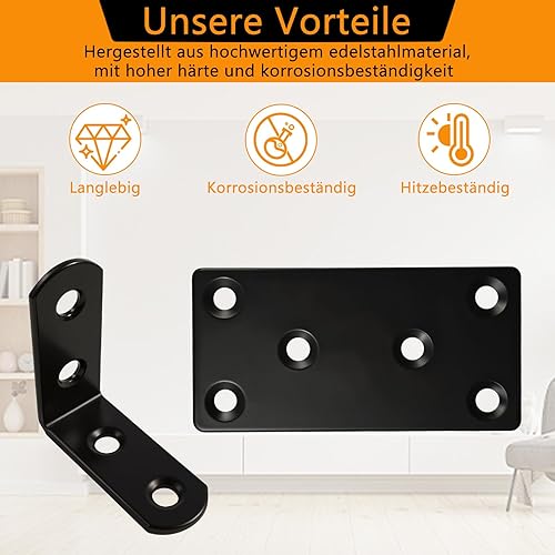8 Pezzi Piastre Metalliche Per Collegamento Travi, 4Pezzi Squadrette Piane Angolari, Connettori Piatti In Acciaio Inox con 60 Viti, Piastre Forate Per Giunzioni In Legno In Acciaio Inox per Mobili DIY