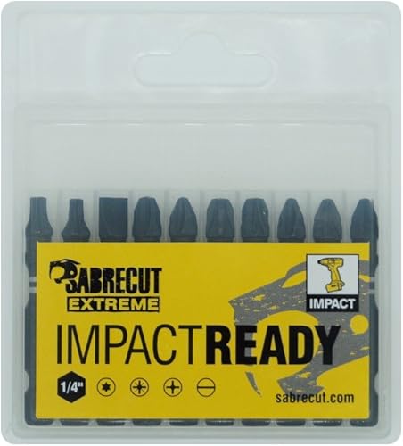 10 x SabreCut SCPC50_10 50 mm PZ2 PZ3 PH2 PH3 SL7 T15 T20 Set di punte per cacciavite a percussione a punta singola Pozidriv POZI Phillips n. 2 n. 3 Torx 15 20 per impieghi gravosi con custodia