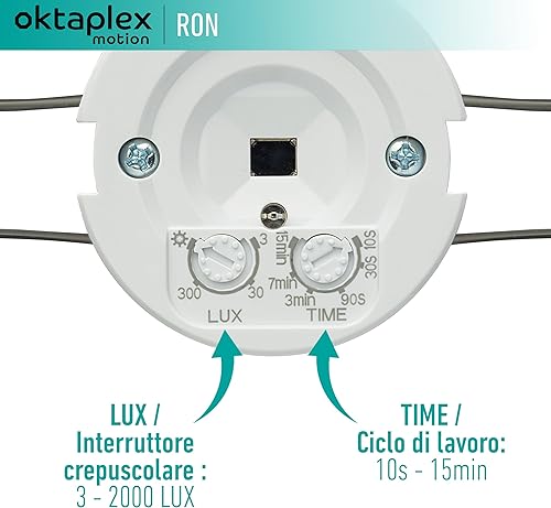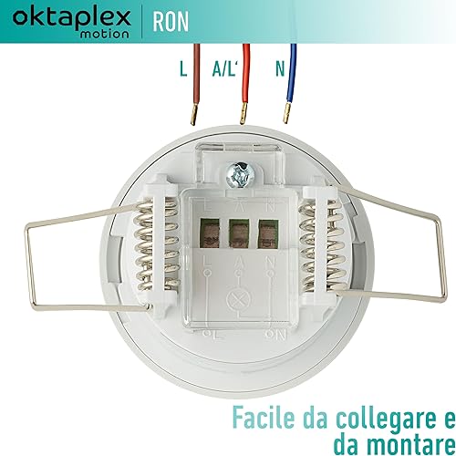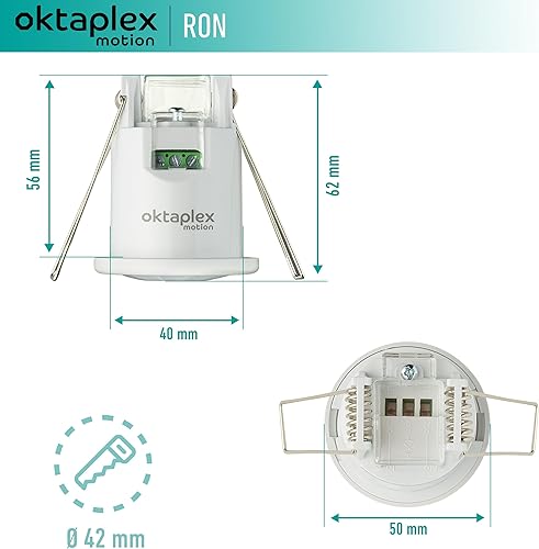 Oktaplex Ron rilevatore di movimento da incasso da interno piatto 360 gradi / 8m sensore infrarosso rilevatore di movimento da soffitto 3 fili 230V LED adatto