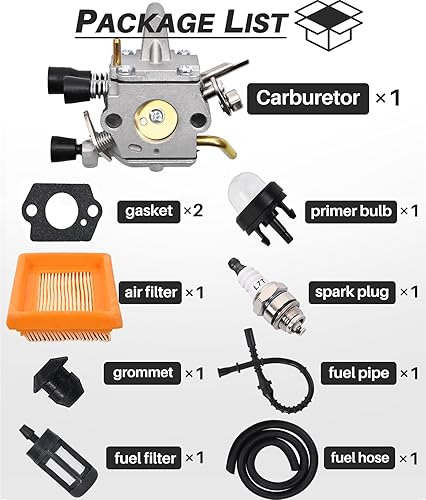 Carburatore per STIHL FS120 FS200 FS250 FS300 FS350 Decespugliatore, JRISBO Ricambi FS 250 Accessori Kit Carburatore 10 in 1 con Guarnizioni, Filtro Aria, Candela, Pompa, Tubo