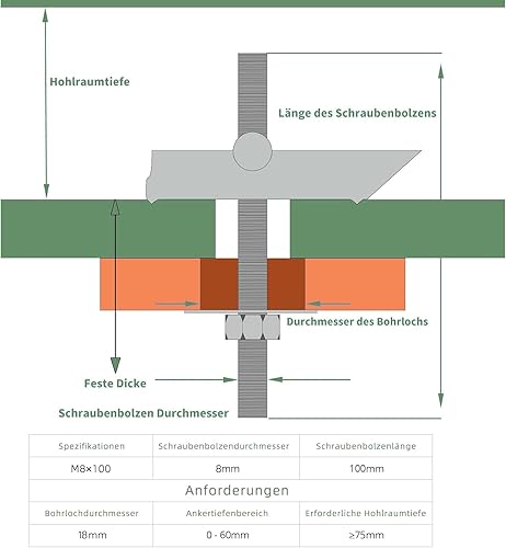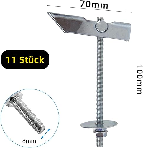 11 Pezzi Tasselli Basculante per Cartongesso, M8x100mm Tasselli Basculante, Acciaio al Carbonio Zincato, per Il Fissaggio di Elementi a Soffitti e Cartongesso
