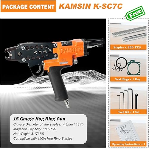 K-SC7C Pistola pneumatica con anello a C 15 calibro diametro di chiusura 7-8mm Corona da 3/4 di pollice Cucitrice pneumatica ad anello per recinzioni, materasso a molla, gabbie, seggiolino auto