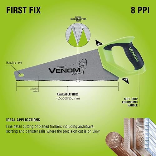 Draper Venom 82198 - Sega a mano per legno con doppia messa a terra, 350 mm, 8PPI - Lunghezza lama 35 cm - 82198 - Sega a mano per alberi e giardini