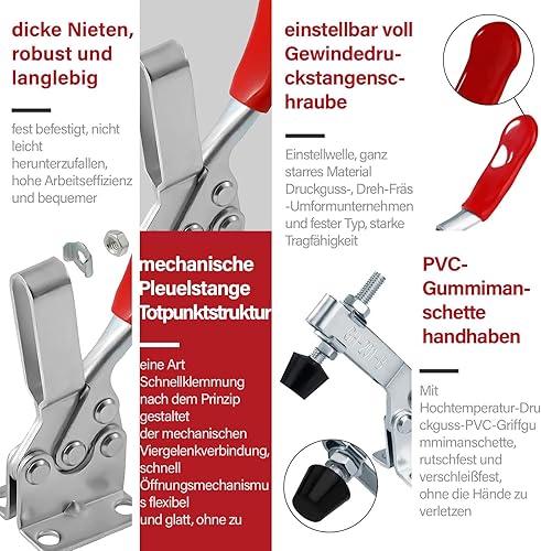 5 pezzi robusti tenditori per leva del ginocchio GH-201B, capacità 90 kg, tenditore verticale a sgancio rapido, per lavori di artigianato, funzionamento a macchina
