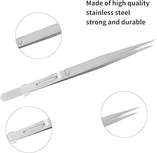 2pcs Pinzette Acciaio Inossidabile 16.4cm Pinzette a Punta Fine Seghettate Disegno Antiscivolo Pinzette Dritte Alta Precisione per Gioielli Nail Art Cucina Montres Laboratoire Industriale