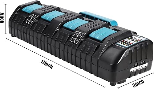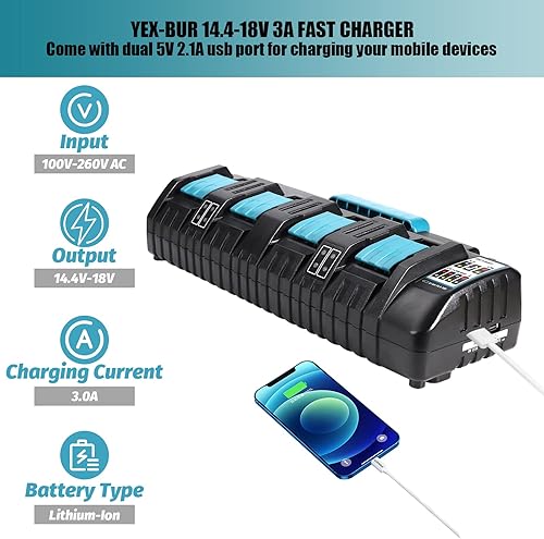 Caricatore a 4 porte DC18SF per Makita 14,4 V-18 V batterie al litio BL1850 BL1815N BL1830 BL1840 BL1850 BL1860 YEX-BUR 3A con 2 porte USB, sostituisce DC18RD DC18RE DC18RC