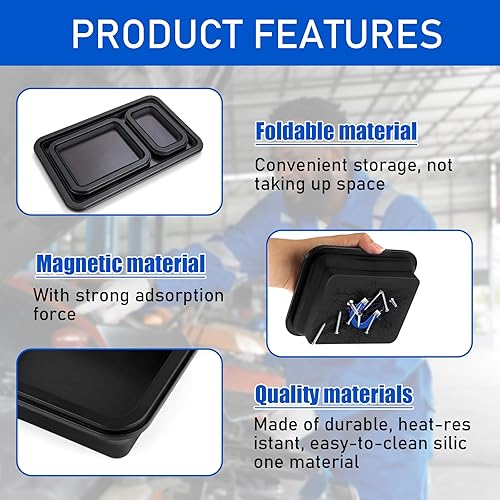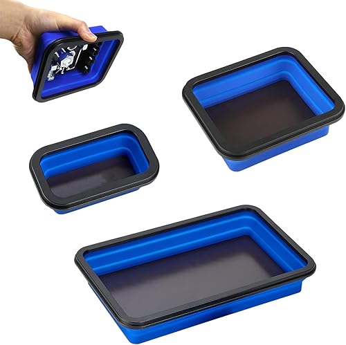 3 Pezzi Vassoio Magnetico Vassoio Pieghevole, Accessori da Officina per Piccoli Bulloni, Viti, Dadi, Rondelle e Altri Strumenti di Piccole Parti, Vassoio in Silicone Porta Attrezzi (Nero)