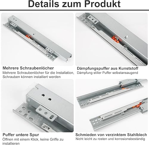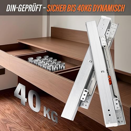 Guide per cassetti, completamente estratte, guide telescopiche, montaggio a pavimento, in acciaio laminato a freddo, 20/25/30/35/40/45/50/55 cm, a scelta, per portabottiglie in vetro ed