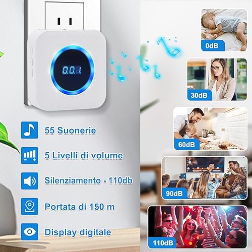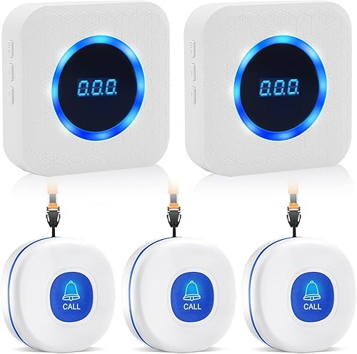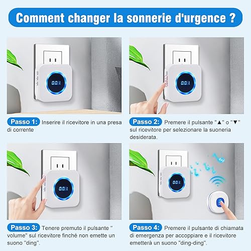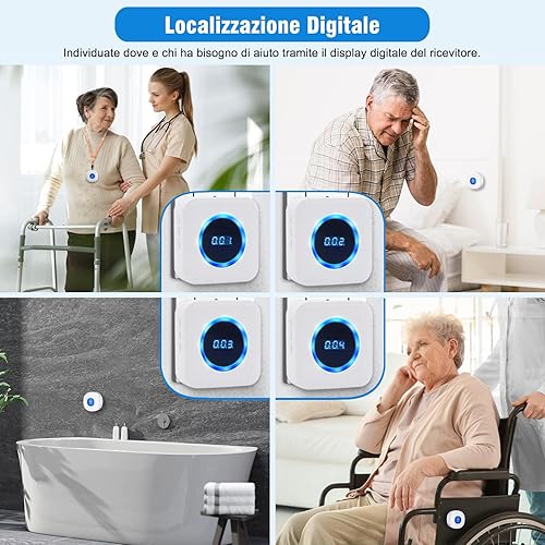 Daytech Pulsante Salvavita Anziani,Pulsante Emergenza Anziani con Display Digitale,Allarme per Anziani per i Familiari che Necessitano di Assistenza Domiciliare (1 Ricevitore + 1 Pulsante)