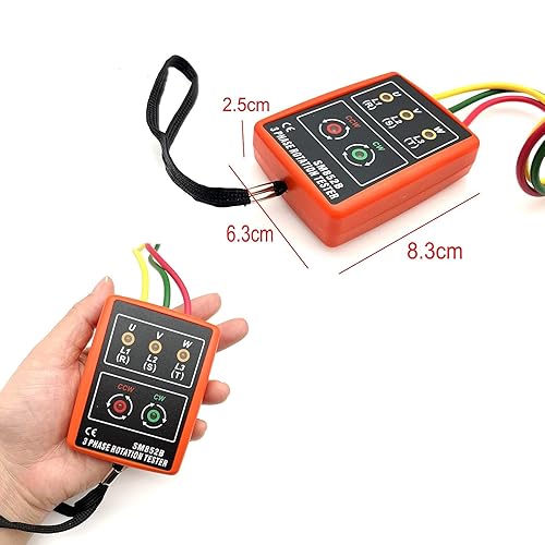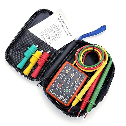 Misuratore di Sequenza Trifase con Display LED Buzzer Tester - Tester Rotazione Fase AC 60V a 600V con Morsetti a Coccodrillo