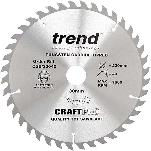 Trend Lama per sega circolare CraftPro TCT combinata, diametro 230 mm x 40 denti x foro 30 mm, punta in carburo di tungsteno, CSB/23040
