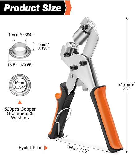 Vastar Set di Pinze per Occhielli Professionali Metallici, Pinze per Occhielli per Teloni con 520 Pezzi di Occhielli da 10 mm, Occhiellatrice per Teloni, Tessuti, Pelle, Tende, Manifesti, Striscioni