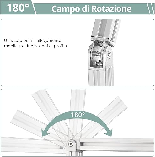 COLFULINE 2 Pezzi Connettori Angolari per Profili Alluminio in Lega di Zinco 4040 Nut 8 Cerniera per Profilo Flessibile Campo di Rotazione a 180° Connettore ad Angolo Regolabile Nero per Fai da Te 3D