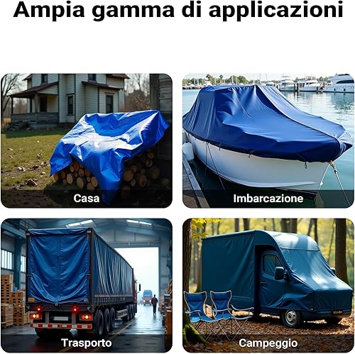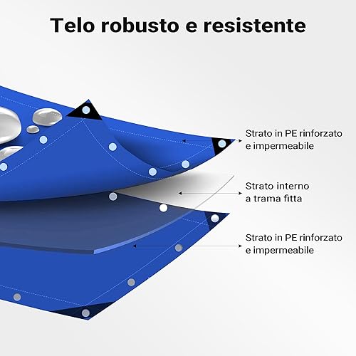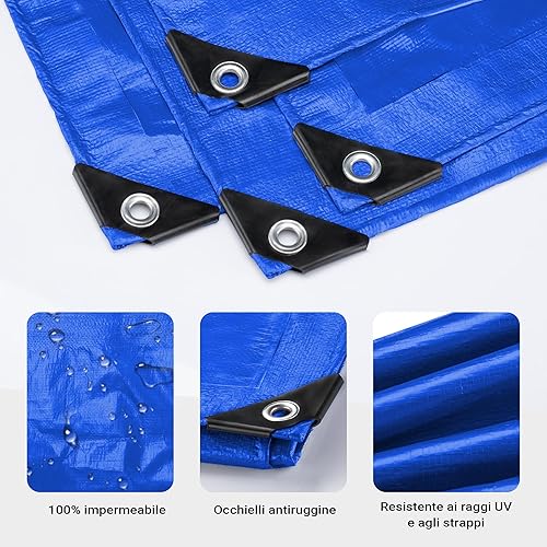 Wiltec Telone occhiellato blu 3 x 4 m resistente alle intemperie e a raggi UV, impermeabile, robusto telo di protezione in poliestere 240 g/m² con rivestimento in PVC
