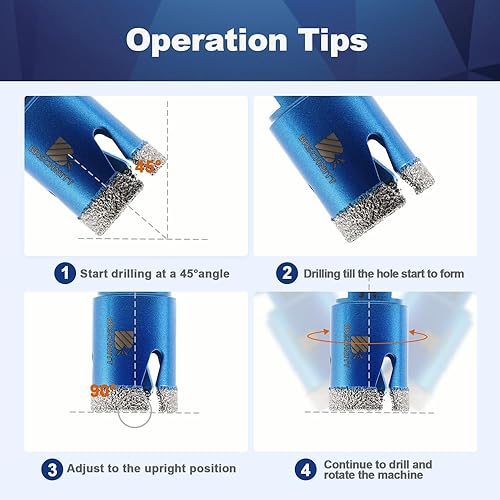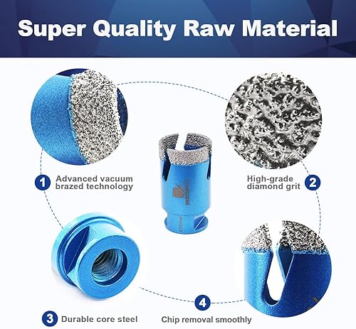 Set di punte diamantate per piastrelle, taglio diamantato e fresa da 25 diamanti, 50 mm, un adattatore per ceramica, granito, porcellana, piastrelle, gres porcellanato, muratura, 10 pezzi