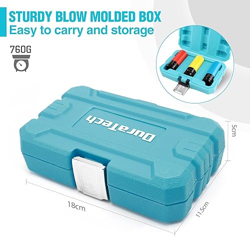 Bussole a Impatto 1/2', Set di 3 Bussola a Impatto 17/19/21mm, Cr-Mo, Adatto per il Cambio Gomme, con Custodia in Plastica