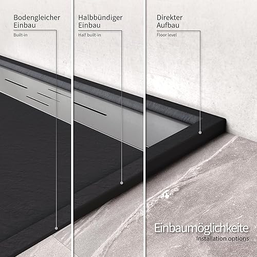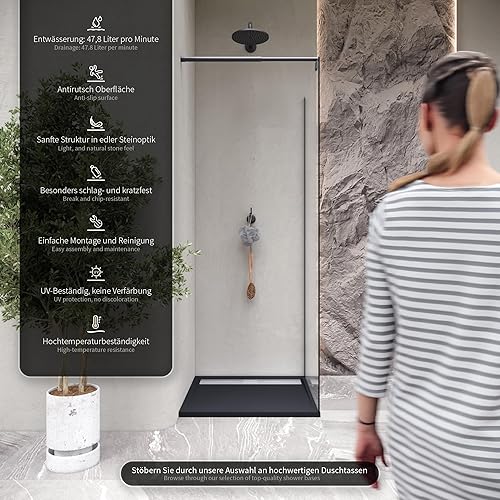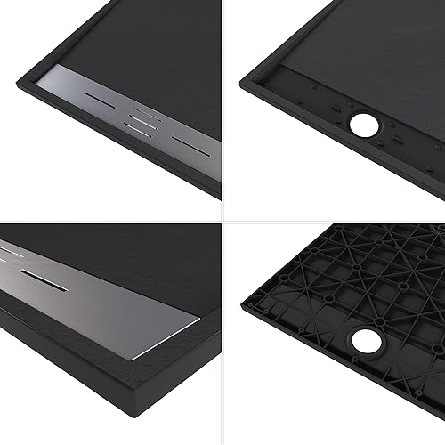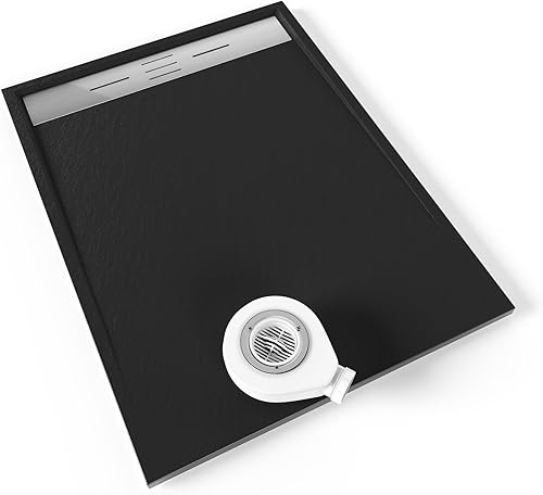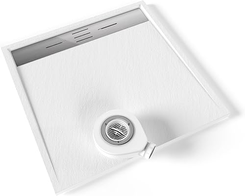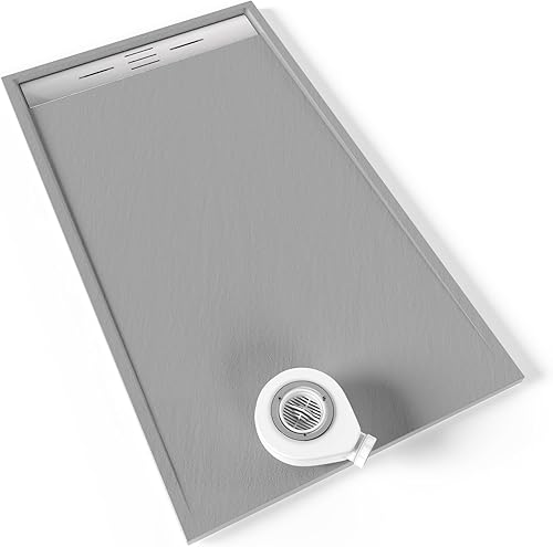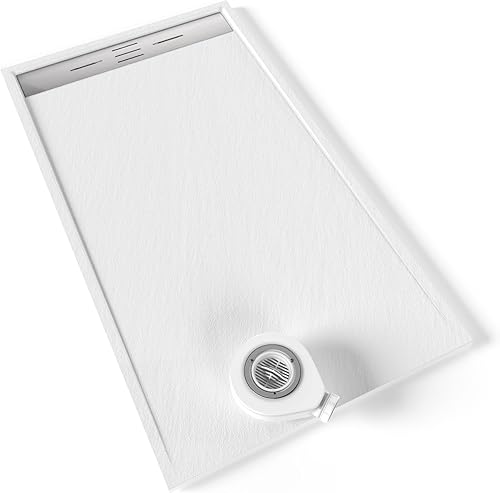 Piatto doccia SMC Hiemal 120 x 70 cm, bianco RAL 9016 – antisdrucciolevole, texture lavagna, antibatterico, resistente agli agenti chimici – Include valvola e griglia inox