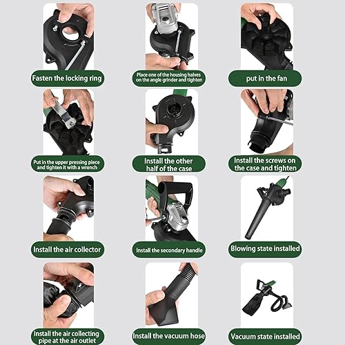 Adattatore per Smerigliatrice Angolare a Soffiatore, 2 in 1 Convertitore da Smerigliatrice Angolare a Soffiatore E Aspirapolvere, Smerigliatrice Angolare Convertita in Aspirapolvere Soffiante Set