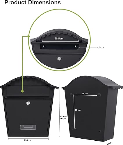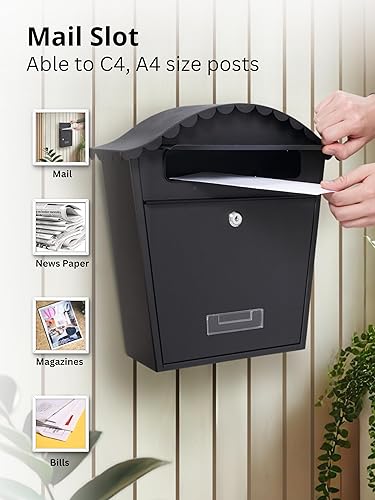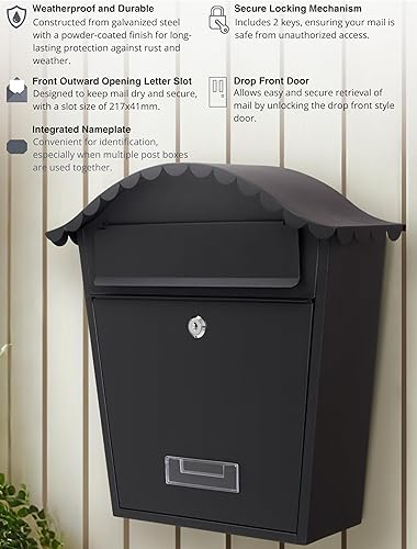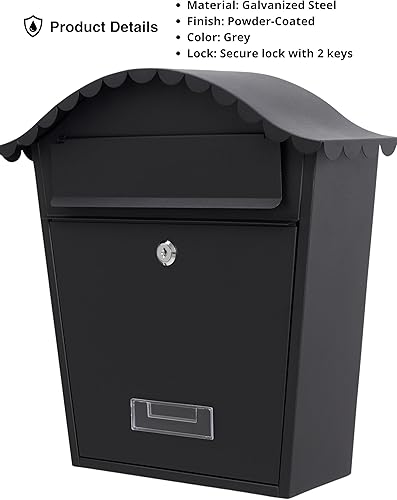 Assorted Collections Cassetta delle lettere da parete, con serratura con 2 chiavi, in acciaio zincato resistente alle intemperie, facile da installare, 36 x 13 x 37 cm (bianco)