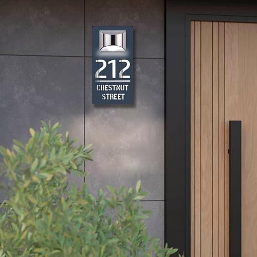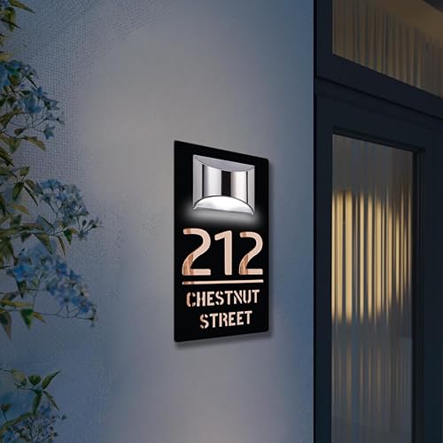 Targhette con numeri civici personalizzati, con luce solare, in acrilico, con numeri e indirizzi, per esterni e targa (quadrata)