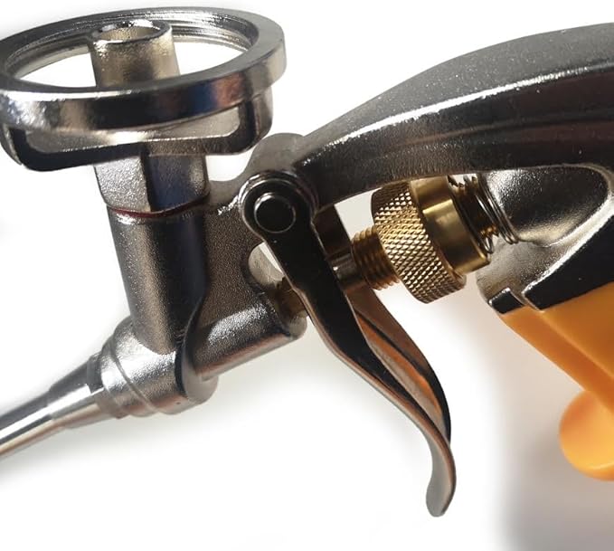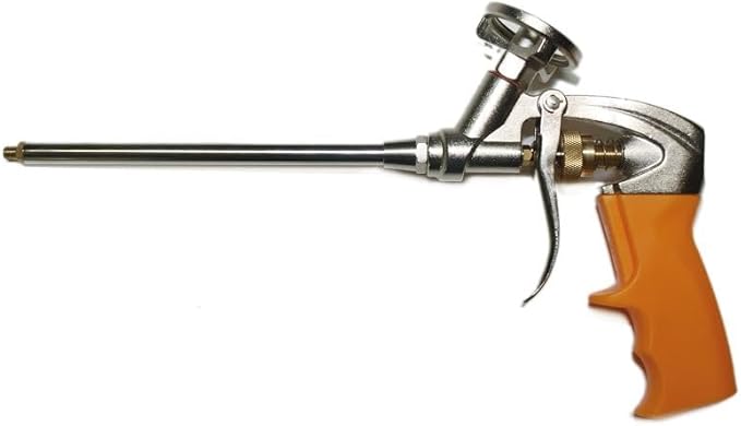 Kit Pistola per Schiuma Poliuretanica Modello Professionale in Acciaio con Otturatore in Ottone Applicatore Preciso e Resistente e Bomboletta di Schiuma Poliuretanica