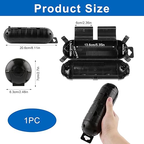 Scatola per cavi impermeabile, per esterni, colore nero, protegge il cavo da umidità, polvere e intemperie, ideale per giardino, terrazza, balcone o campeggio, facile da usare, robusta e durevole