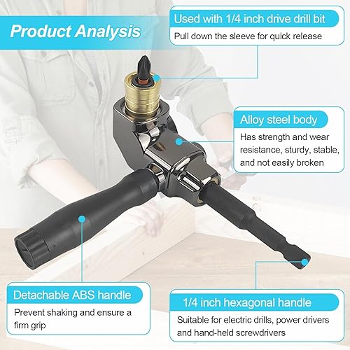 Adattatore per Trapano a 90 Gradi, High-Quality Metal Avvitatore Angolare Adattatore, Maniglia Mandrino per Avvitatore, Snodo per Avvitatore Adattatore per Trapano Elettrico, Accessori Trapano