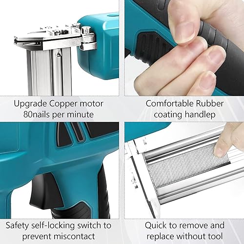 Upgrade Pistola sparachiodi senza fili 900W compatibile con batteria Makita 21V, set di utensili con 2 batterie da 21V e caricabatteria, doppia protezione
