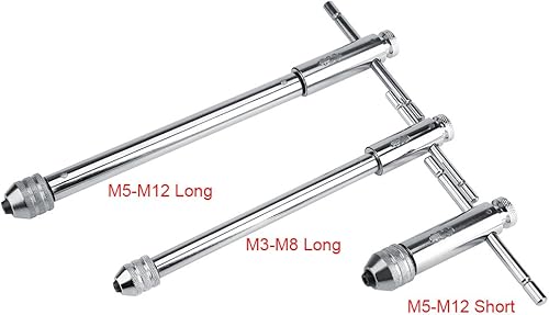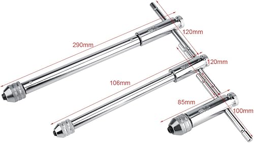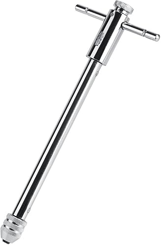 Regolabile giramaschi a cricchetto con impugnatura a T regolabile domestici in lega di acciaio argento tipo giramaschi a cricchetto regolabile giramaschi a T con una mano, M3-M8 Long